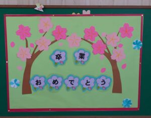 毎年、桜をモチーフにした「卒業おめでとう」の掲示を作成していました。
