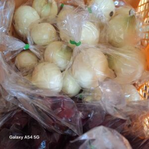 R5年度はJAやAコープ、地元展開のスーパーに販売許可を申請して売り出すまでの間に3週間ほど時間がかかり、その間に梅雨の影響で保管していた玉ねぎが腐り始め、泣く泣く400個ほど廃棄した苦い過去があります。(腐った部分だけ捨てて、あとは自家消費しました!!)